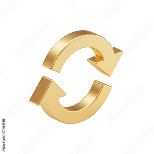 Golden refresh symbol with directional arrows representing cyclical process isolated element