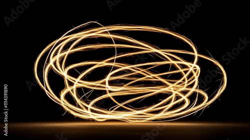 Golden Sparkler Trails Create Abstract Sphere Design