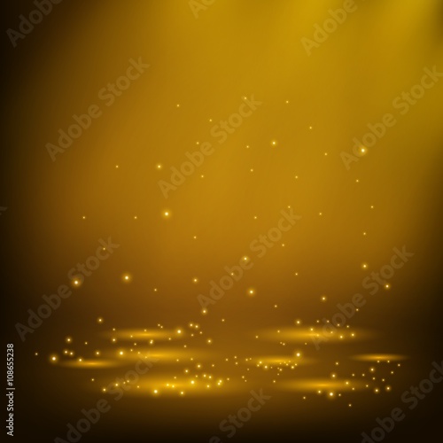 Golden spotlights shining with sparkles