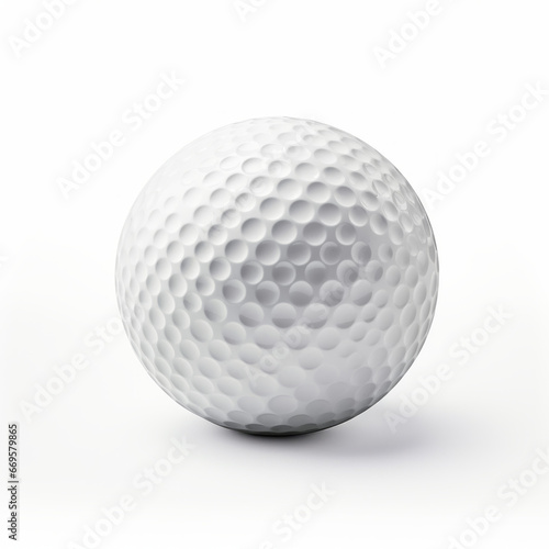 Golf ball with dimpled texture, close-up, isolated on white background.