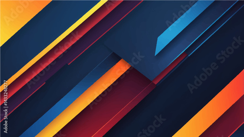 Gradient background features vibrant yellow, orange, red hues transitioning into deep blues. Diagonal lines create dynamic visual effect. Smooth color blending dominates composition.