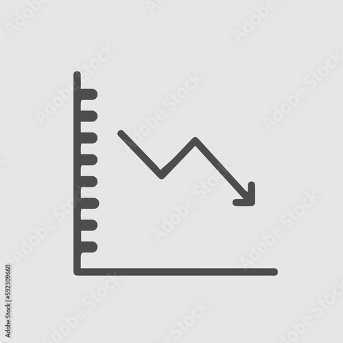 Graph arrow down icon. Chart simple isolated vector pictogram.