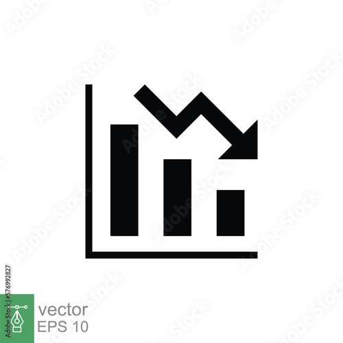 Graph down, reduce progress glyph icon. Simple solid style efficiency decrease graphic, finance chart, abstract graph, trend vector illustration. Arrow below, bankrupt. EPS 10.
