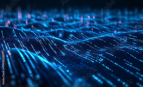 Graph of computer code waves, binary code big data, data encoding, data flow, digital security. Internet technology 3D illustration.