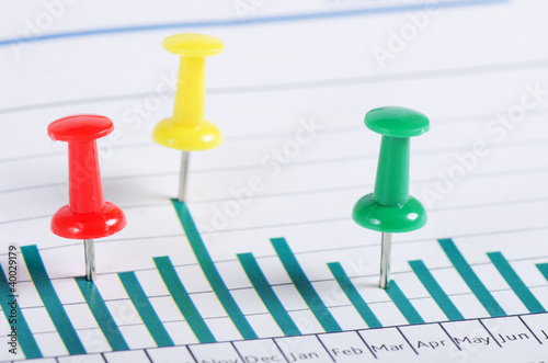 Graphs, charts with multi-coloured push buttons