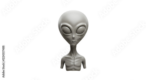 Gray Alien 3D Model Render High Quality Image isolated on white background. Generative AI