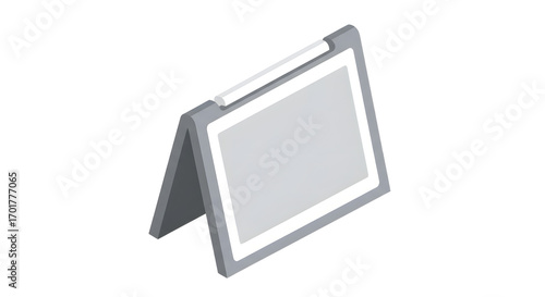 Gray Portable Digital Signage Display Standing on White Background