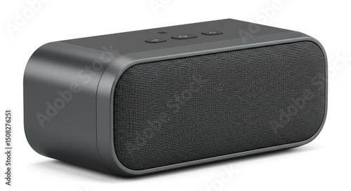 Gray portable speaker, rectangular, with fabric covering