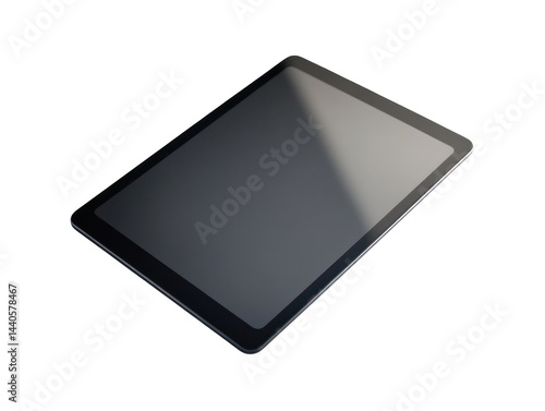 Gray-toned tablet computer, angled, with a slight shadow, showcasing its modern design. Digital illustration.