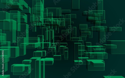 Green and dark abstract digital and technology background. The pattern with repeating rectangles