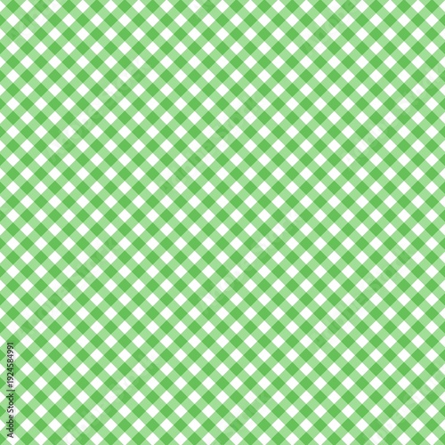 Green and white diagonal gingham checkered seamless pattern background. Classic green argyle pattern backdrop.