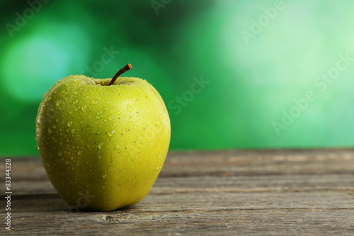 Green apple on grey wooden background