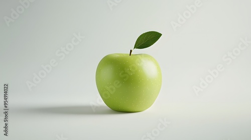Green Apple with Leaf on White Background.