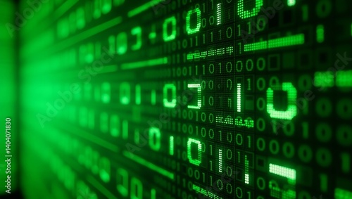 Green binary code background digital technology data stream matrix security information system wallpaper design