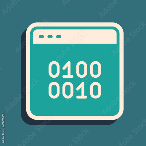 Green Binary code icon isolated on green background. Long shadow style. Vector