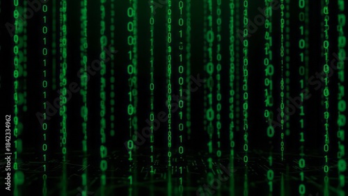 Green Binary Code Matrix Background Digital Technology Data. Concept featuring binary code, matrix, digital, green, technology.