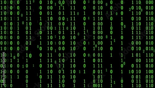 Green binary code streaming down a black screen, resembling digital rain or a computer program interface.