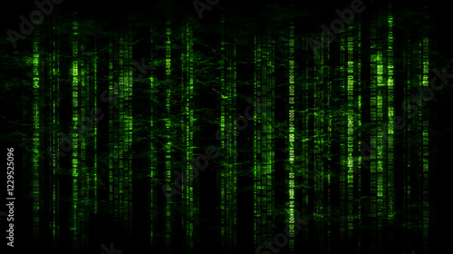 Green Binary Code Streams Flow Down a Dark Abstract Digital Background with Grunge Texture.