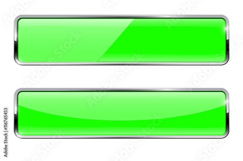 Green buttons. Rectangular web icons with chrome frame