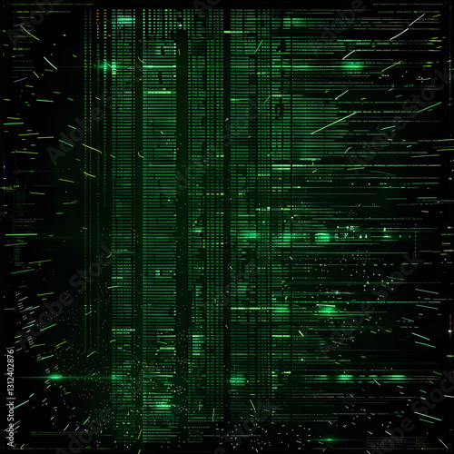 Green Code Streaming on a Dark Terminal Screen Signifying Programming and Data Processing