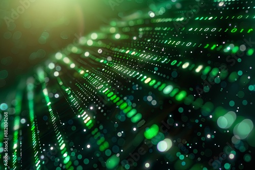 Green dark binary code data streaming background created with Generative AI