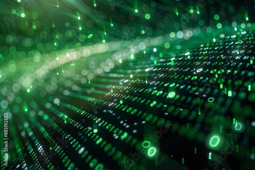 Green dark binary code data streaming background created with Generative AI