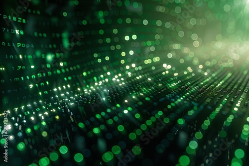 Green dark binary code data streaming background created with Generative AI