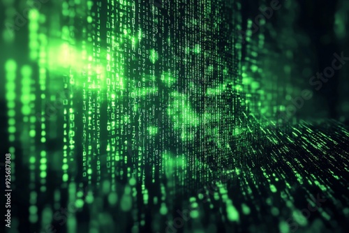 Green Dark Binary Code with Data Streaming Background created with Generative AI