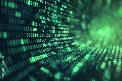 Green Dark Binary Code with Data Streaming Background created with Generative AI