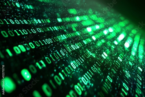 Green Dark Binary Code with Data Streaming Background created with Generative AI