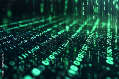 Green Dark Binary Code with Data Streaming Background created with Generative AI