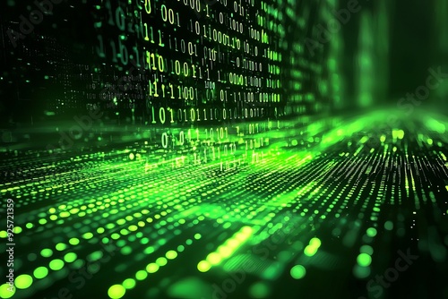Green Dark Binary Code with Data Streaming Background created with Generative AI