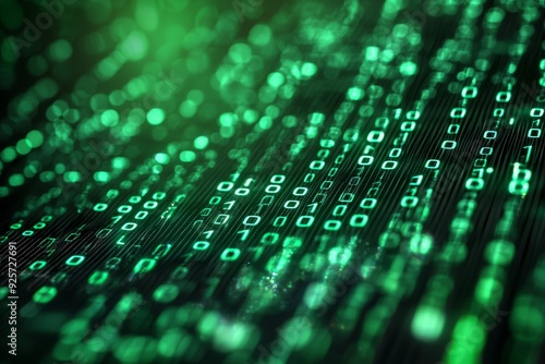 Green Dark Binary Code with Data Streaming Background created with Generative AI