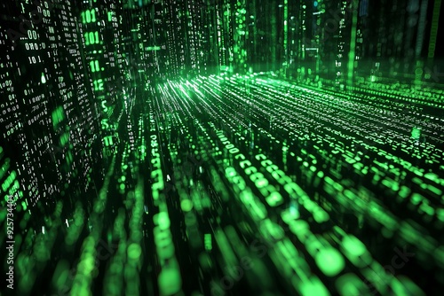 Green Dark Binary Code with Data Streaming Background created with Generative AI