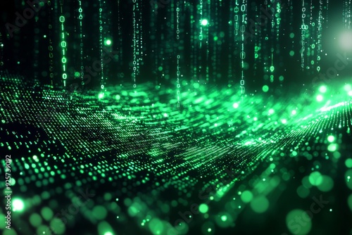 Green Dark Binary Code with Data Streaming Background created with Generative AI