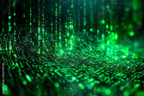 Green Dark Binary Code with Data Streaming Background created with Generative AI