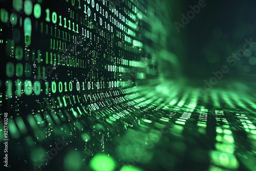 Green Dark Binary Code with Data Streaming Background created with Generative AI