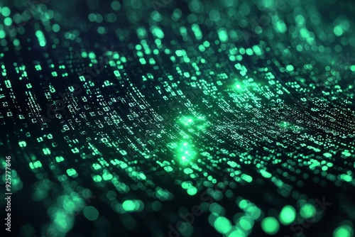 Green Dark Binary Code with Data Streaming Background created with Generative AI