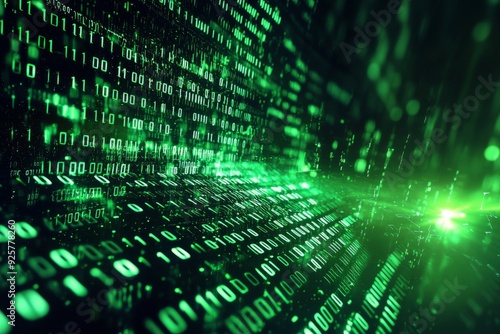 Green Dark Binary Code with Data Streaming Background created with Generative AI