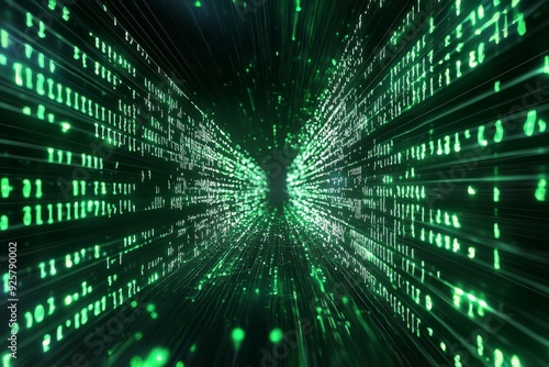 Green Dark Binary Code with Data Streaming Background created with Generative AI