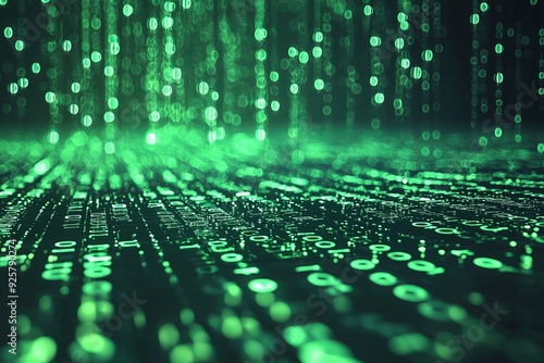 Green Dark Binary Code with Data Streaming Background created with Generative AI