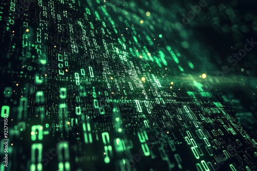Green Dark Binary Code with Data Streaming Background created with Generative AI
