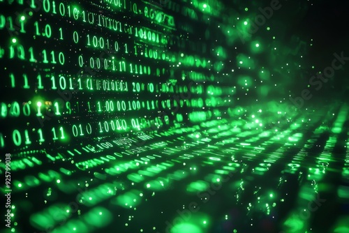 Green Dark Binary Code with Data Streaming Background created with Generative AI