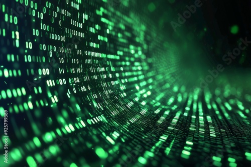 Green Dark Binary Code with Data Streaming Background created with Generative AI