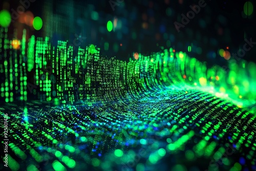 Green Dark Binary Code with Data Streaming Background created with Generative AI