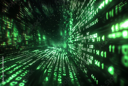 Green Dark Binary Code with Data Streaming Background created with Generative AI