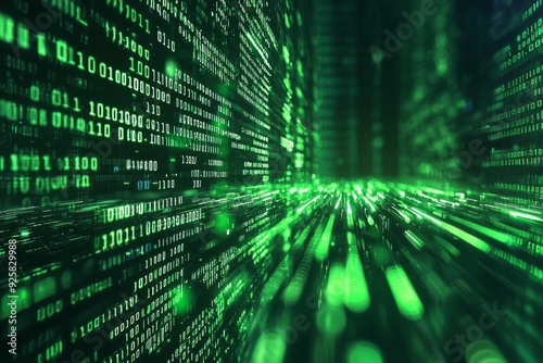 Green Dark Binary Code with Data Streaming Background created with Generative AI