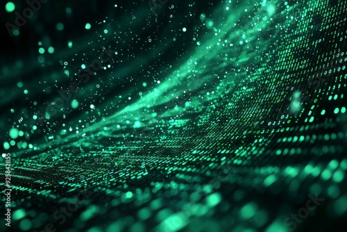 Green Dark Binary Code with Data Streaming Background created with Generative AI