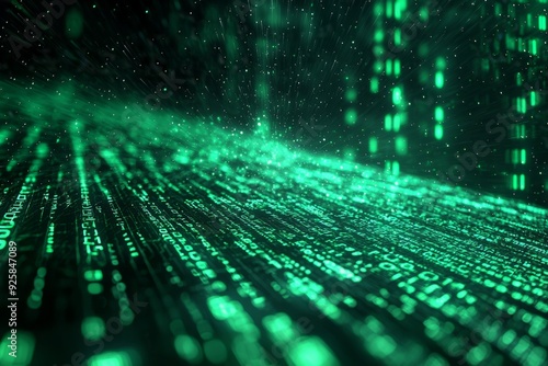 Green Dark Binary Code with Data Streaming Background created with Generative AI