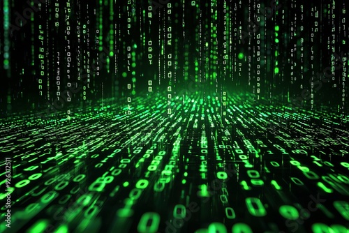 Green Dark Binary Code with Data Streaming Background created with Generative AI